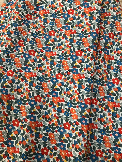 Betsy Berry is a fusion of Classic floral prints - with flowers and buds in rich corals and airforce blue with coral, orange and ochre berries and foliage n grey tones on an ivory background. A dramatic and stunning print, Ideal for any dressmaking, quilting or crafting project - even home-styling.